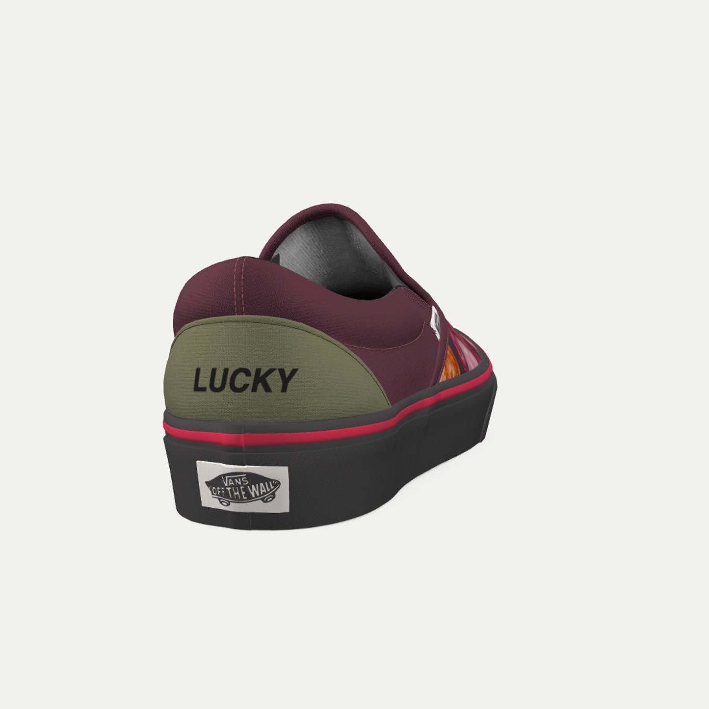 • Lucky shoes — Each sneaker has the word "LUCKY" embroidered on the heel as a magic charm.
